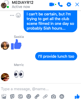 Firstly, thanks so much for helping me out and acting in my film! It’s very stressful and I have a lot of extras to manage also so please make it easy to direct, and any help during filming would be happily accepted.