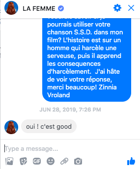Hello, I am an Australian Student and I am in the process of making a film for one of my classes. I would like to know if I could use your song ‘S.S.D’ in my film? The story is about a man who harasses a waitress, and then learns the consequences of his actions. I hope to hear back from you soon, thanks a bunch!