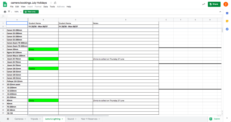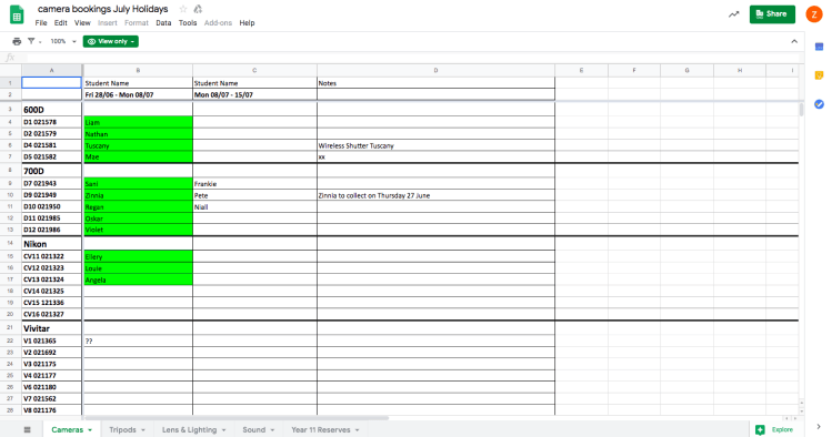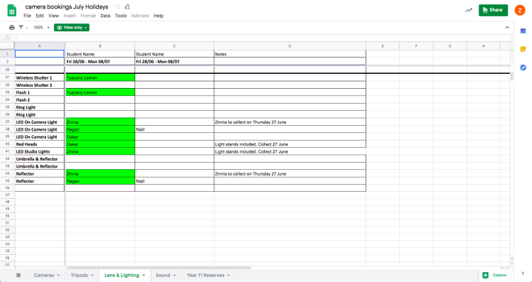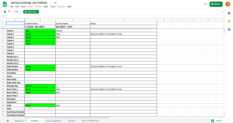 I made certain that I will have all the equipment I needed for the set filming dates as I have a very tight schedule. There is a lot of equipment I’m planning on using, so I will be picking it all up in a car a few days before production. These screenshots below show the equipment I am putting on loan and who I am going to hand it over to in the holidays.